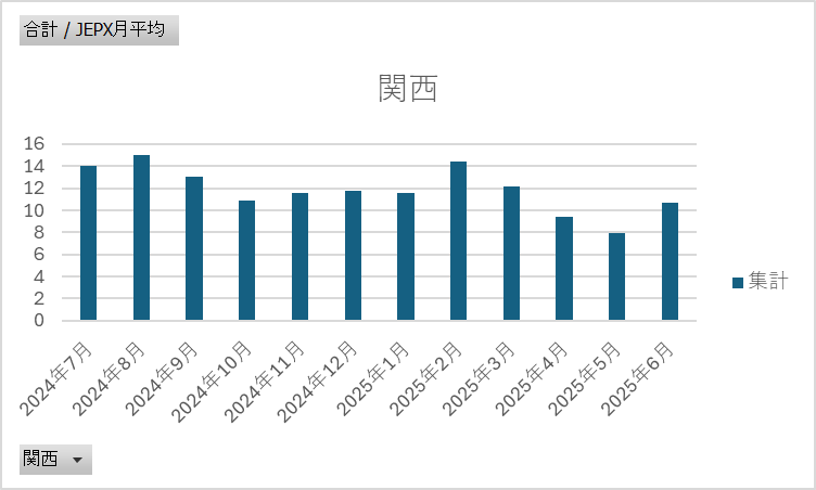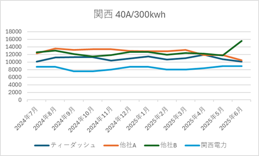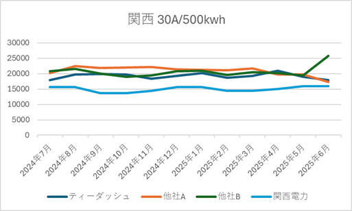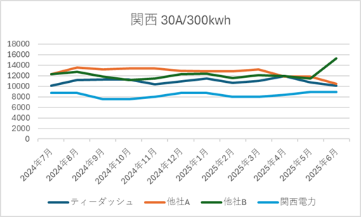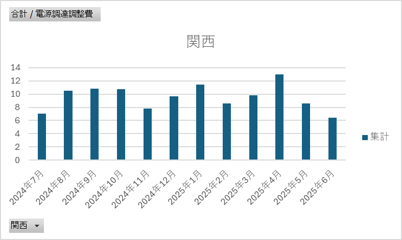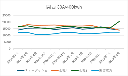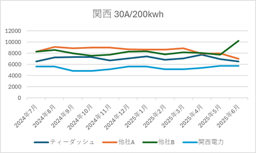 ■ ティーダッシュの電源調達調整費の推移(2025年6月時点|直近1年)