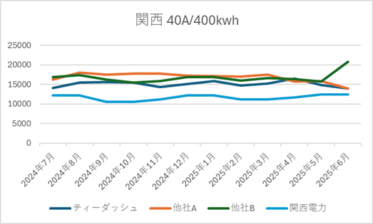 以下の使用量を参考に、各社の料金水準を比較できます。