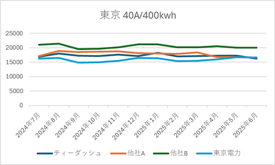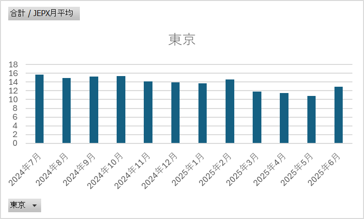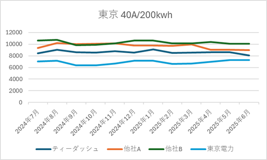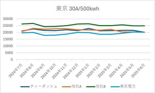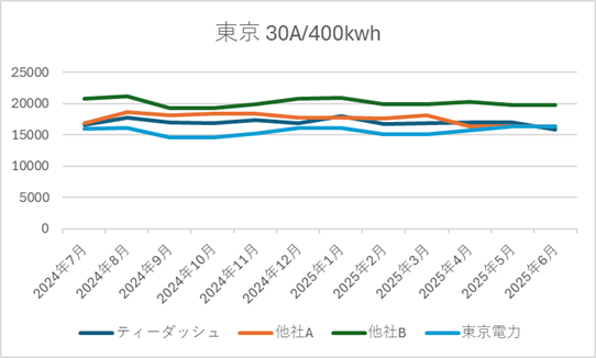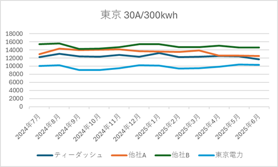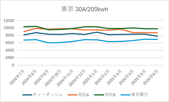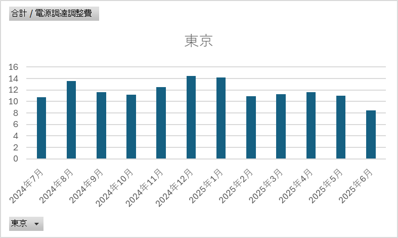 ■ ティーダッシュの電源調達調整費の推移(2025年6月時点|直近1年)